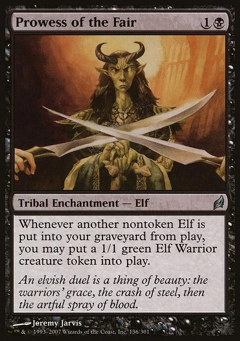 Whenever another nontoken Elf is put into your graveyard from the battlefield, you may create a 1/1 green Elf Warrior creature token.