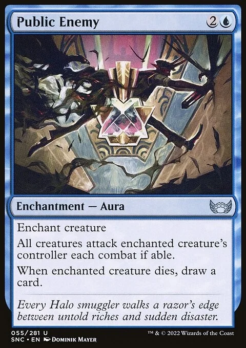 Enchant creature All creatures attack enchanted creature's controller each combat if able. When enchanted creature dies, draw a card.