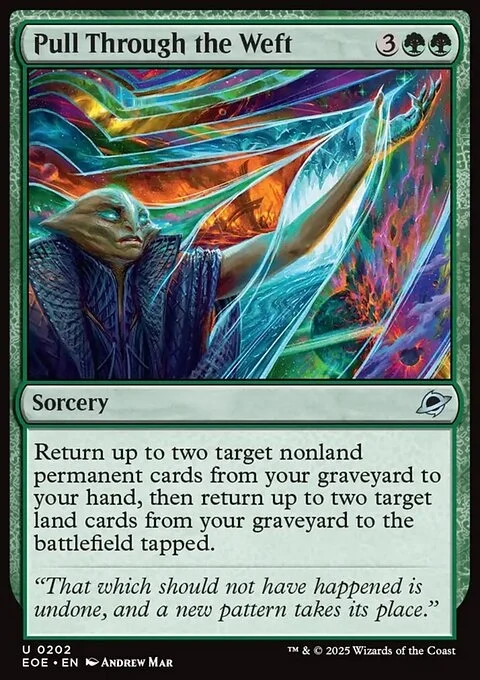 Return up to two target nonland permanent cards from your graveyard to your hand, then return up to two target land cards from your graveyard to the battlefield tapped.