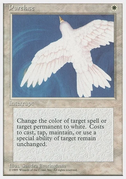 Change the color of target spell or target permanent to white. Costs to cast, tap, maintain, or use a special ability of target remain unchanged.