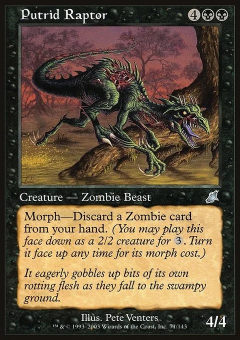 Morph—Discard a Zombie card from your hand. (You may play this face down as a 2/2 creature for 3. Turn it face up any time for its morph cost.)