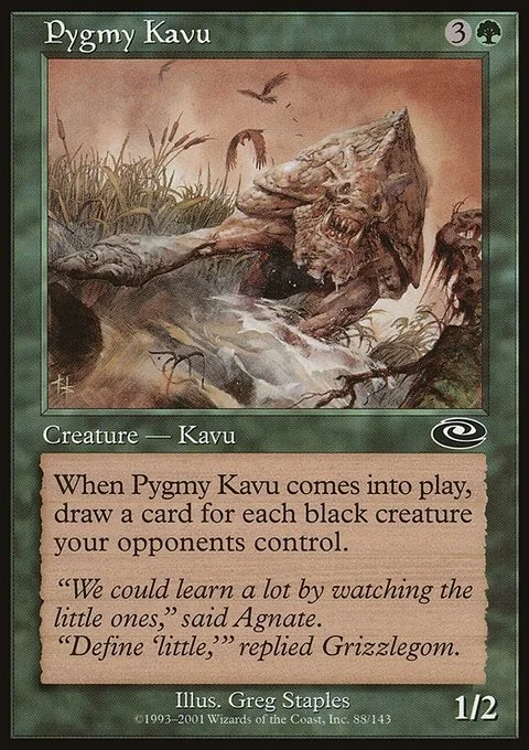 When Pygmy Kavu enters the battlefield, draw a card for each black creature your opponents control.