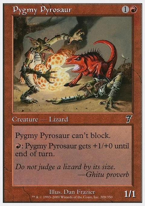 Pygmy Pyrosaur can't block. {R}: Pygmy Pyrosaur gets +1/+0 until end of turn.