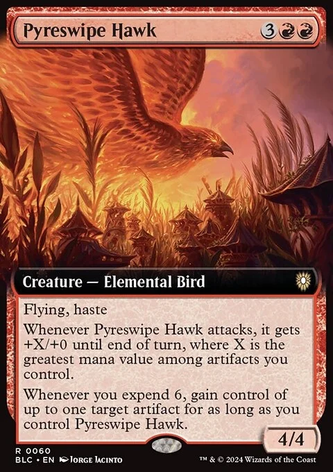Whenever you expend 6, gain control of up to one target artifact for as long as you control this creature. (You expend 6 as you spend your sixth total mana to cast spells during a turn.)