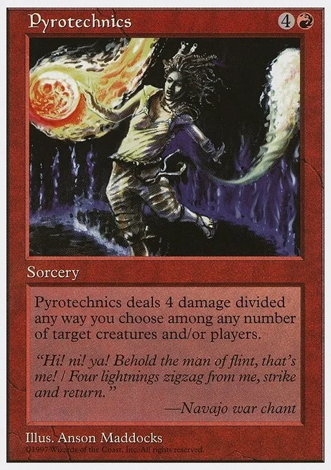 Pyrotechnics deals 4 damage divided any way you choose among any number of target creatures and/or players.