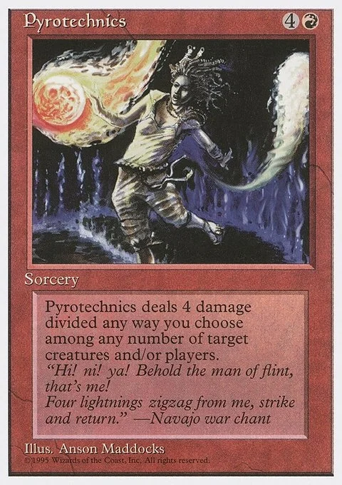 Pyrotechnics deals 4 damage divided as you choose among any number of targets.
