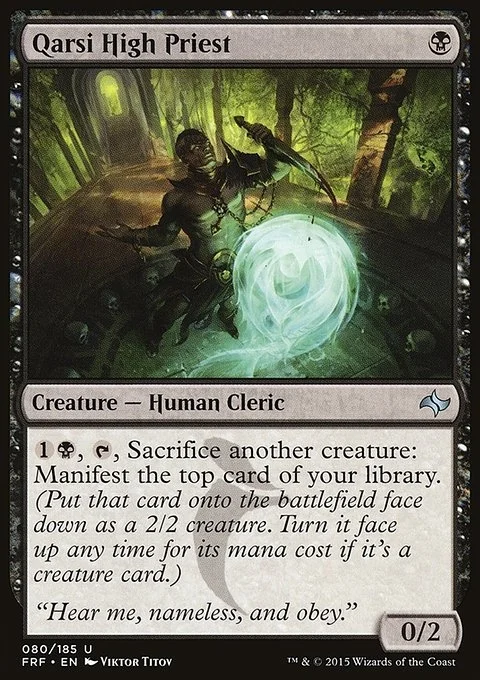 {1}{B}, {T}, Sacrifice another creature: Manifest the top card of your library. (Put that card onto the battlefield face down as a 2/2 creature. Turn it face up any time for its mana cost if it's a creature card.)