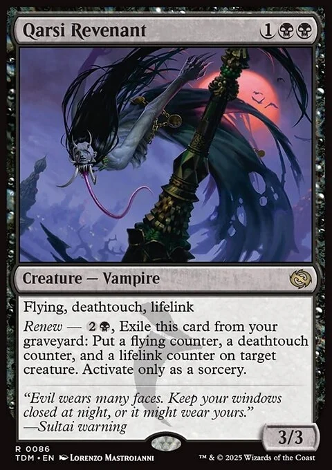 Flying, deathtouch, lifelink Renew — {2}{B}, Exile this card from your graveyard: Put a flying counter, a deathtouch counter, and a lifelink counter on target creature. Activate only as a sorcery.