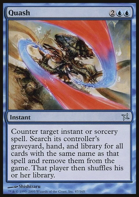 Counter target instant or sorcery spell. Search its controller's graveyard, hand, and library for all cards with the same name as that spell and exile them. Then that player shuffles.