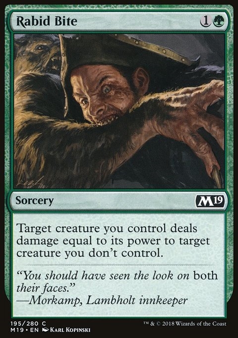 Target creature you control deals damage equal to its power to target creature you don't control.