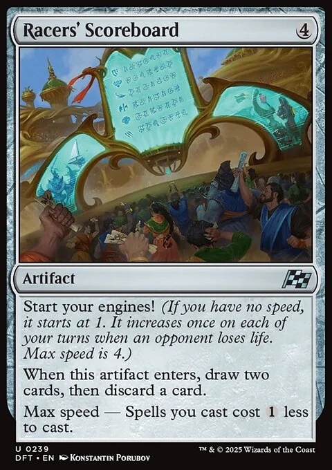 Start your engines! (If you have no speed, it starts at 1. It increases once on each of your turns when an opponent loses life. Max speed is 4.)