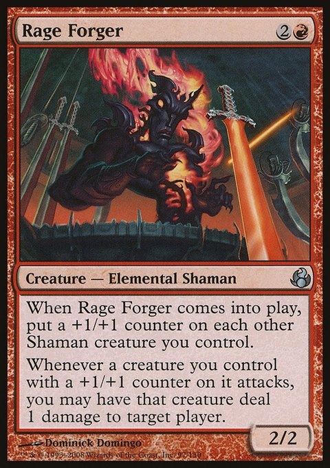 When Rage Forger comes into play, put a +1/+1 counter on each other Shaman creature you control.