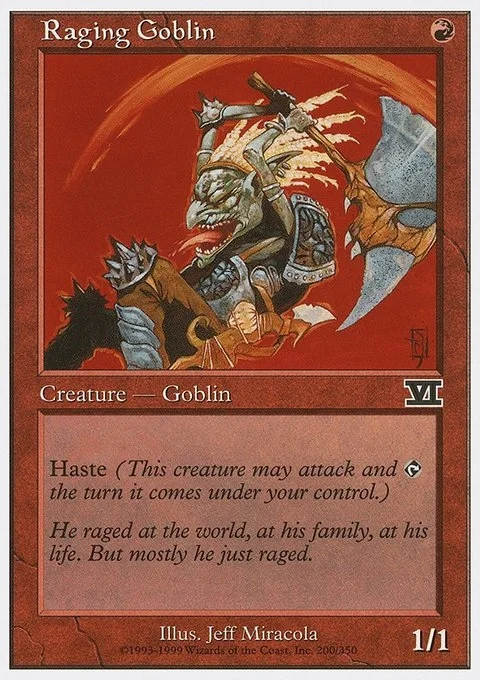 Haste (This creature can attack and {T} as soon as it comes under your control.)