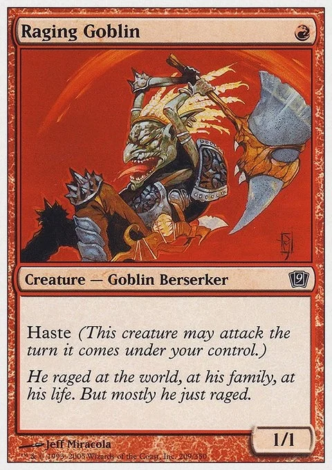 Haste (This creature can attack and {T} as soon as it comes under your control.)