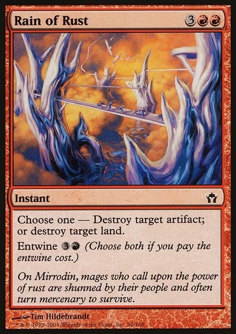 Choose one — • Destroy target artifact. • Destroy target land. Entwine {3}{R} (Choose both if you pay the entwine cost.)