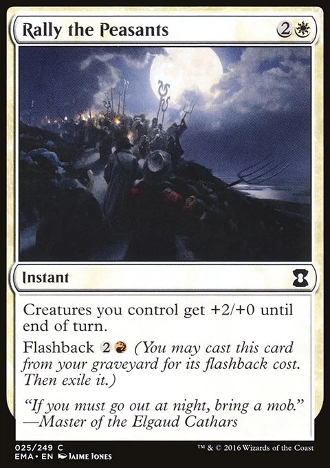 Creatures you control get +2/+0 until end of turn. Flashback {2}{R} (You may cast this card from your graveyard for its flashback cost. Then exile it.)