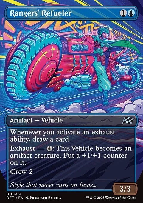 Whenever you activate an exhaust ability, draw a card. Exhaust — {4}: This Vehicle becomes an artifact creature. Put a +1/+1 counter on it. (Activate each exhaust ability only once.) Crew 2