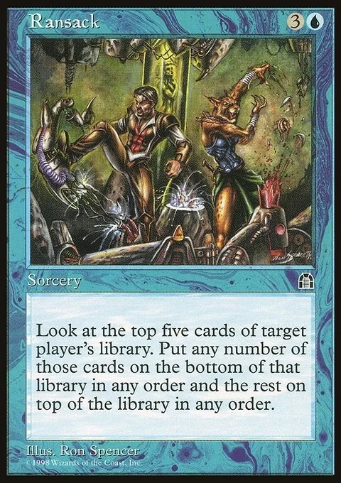 Look at the top five cards of target player's library. Put any number of them on the bottom of that library in any order and the rest on top of the library in any order.