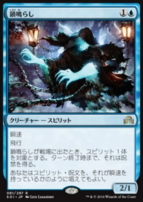 Flash Flying When Rattlechains enters the battlefield, target Spirit gains hexproof until end of turn. You may cast Spirit spells as though they had flash.