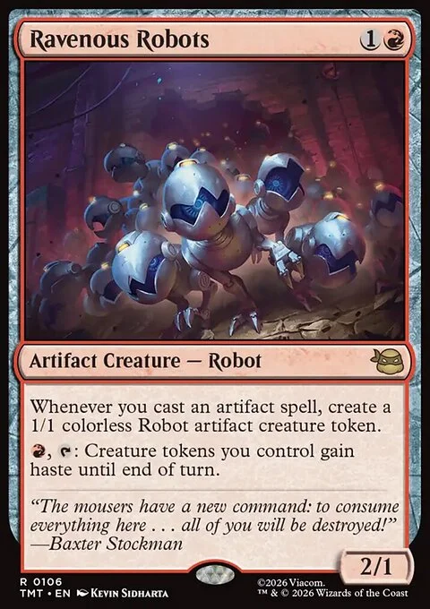 Whenever you cast an artifact spell, create a 1/1 colorless Robot artifact creature token. {R}, {T}: Creature tokens you control gain haste until end of turn.