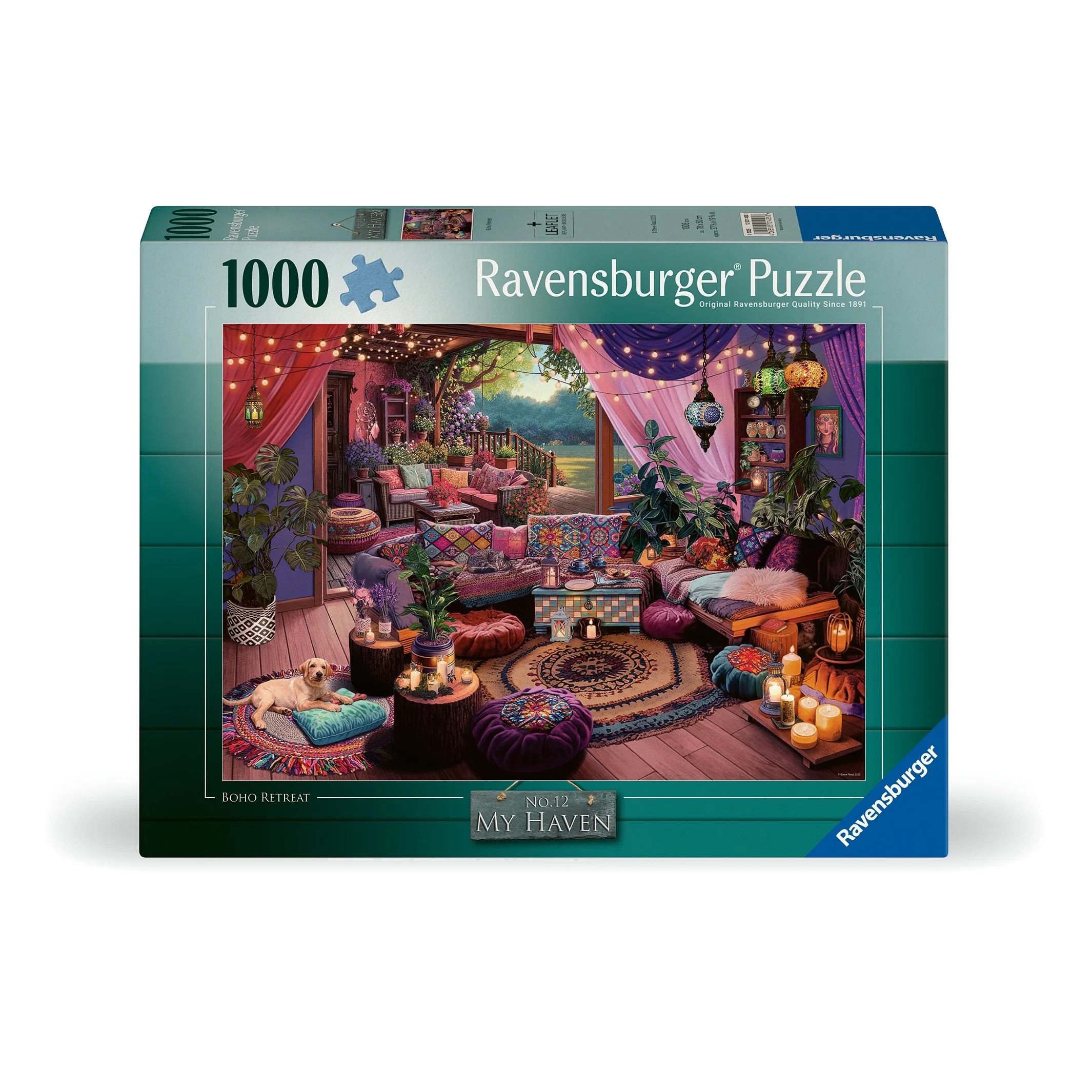 Ideal for unwinding after a long day, enjoying time with family, or as a thoughtful gift for those who appreciate bohemian aesthetics and puzzles, this 1000-piece jigsaw puzzle promises hours of immersive fun. As you piece together the elements of this stylish retreat, you'll feel a sense of calm and accomplishment. Create your own oasis of tranquility and watch as this captivating boho scene unfolds piece by piece.