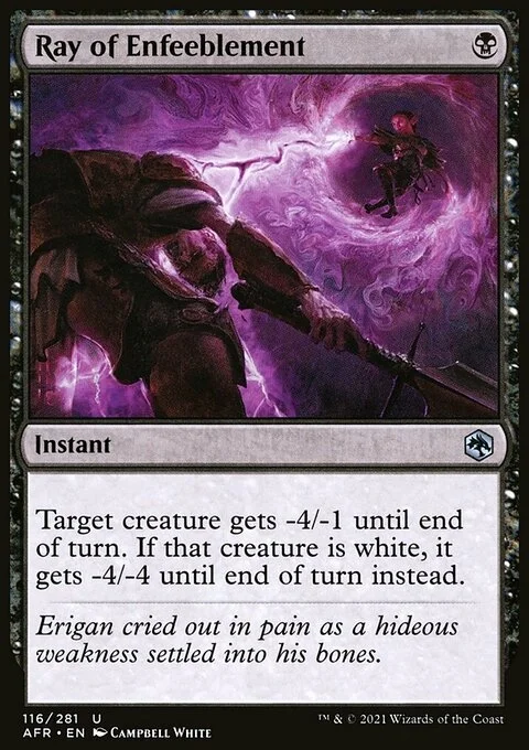 Target creature gets -4/-1 until end of turn. If that creature is white, it gets -4/-4 until end of turn instead.