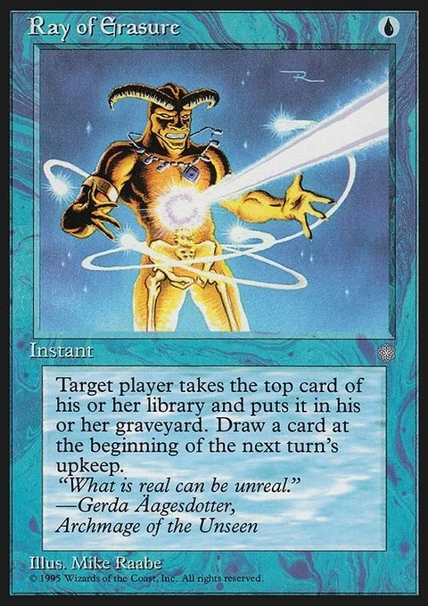 Target player mills a card. Draw a card at the beginning of the next turn's upkeep.