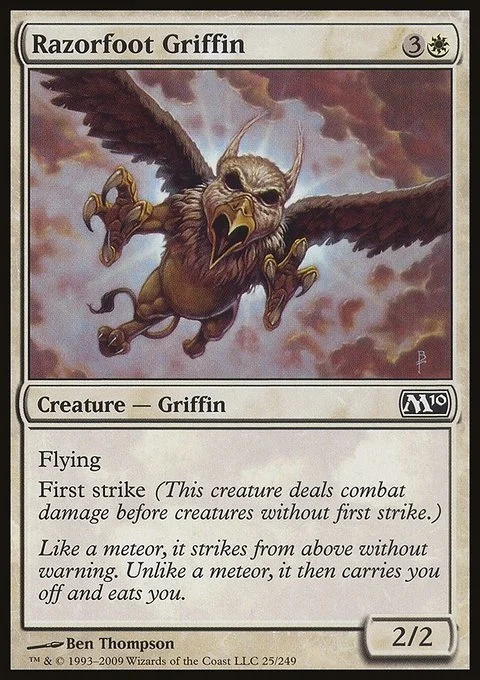 Flying (This creature can't be blocked except by creatures with flying or reach.) First strike (This creature deals combat damage before creatures without first strike.)