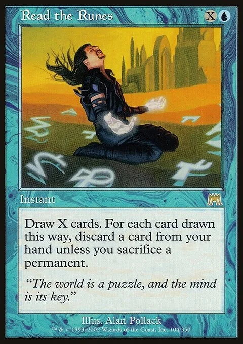 Draw X cards. For each card drawn this way, discard a card unless you sacrifice a permanent.