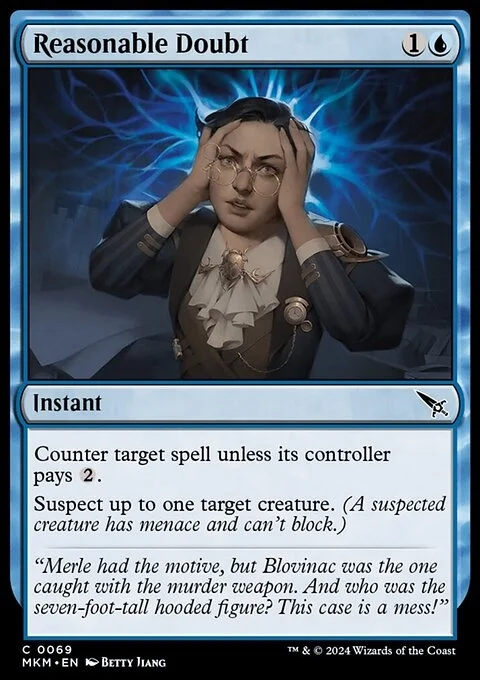 Counter target spell unless its controller pays {2}. Suspect up to one target creature. (A suspected creature has menace and can't block.)