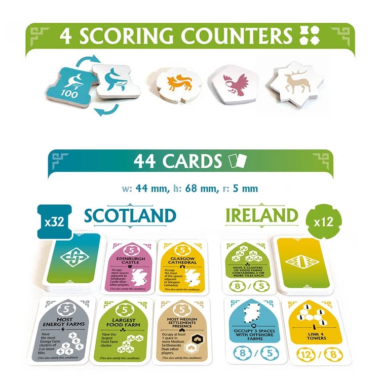 A new tile-laying game from Reiner Knizia set in a lush and hopeful future. Rebirth revitalizes this classic genre with streamlined mechanisms that are combined with a signature Mighty Boards evocative vision — one of a lush, cosy, and hopeful future. Following a series of calamities that left civilization in shambles, societies around the world are being rebuilt anew in harmony with nature. Scotland lies in ruins and the ancient clans have taken it upon themselves to restore the land. As clan leaders you will compete for strategic control of the land by rebuilding its prestigious castles. Rebirth is a new, tile-laying game from Reiner Knizia. The game revitalizes this classic genre by combining Knizia’s elegant mechanics with Mighty Boards’ evocative world building. The result is a eurogame with smooth gameplay, set in a lush and hopeful future. Each turn, players draw a tile from their supply and place it strategically on the board. These tiles represent your clan’s contribution to rebuilding the land. Rebirth rewards strategic foresight and clever tactical play, with tougher decisions emerging over the course of the game.