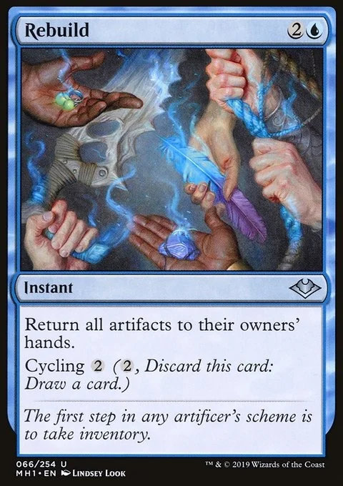 Return all artifacts to their owners' hands. Cycling {2} ({2}, Discard this card: Draw a card.)