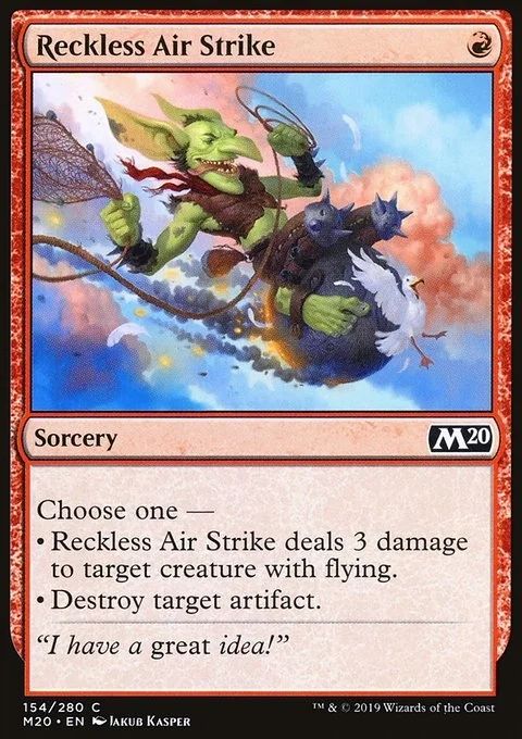 Choose one — • Reckless Air Strike deals 3 damage to target creature with flying. • Destroy target artifact.