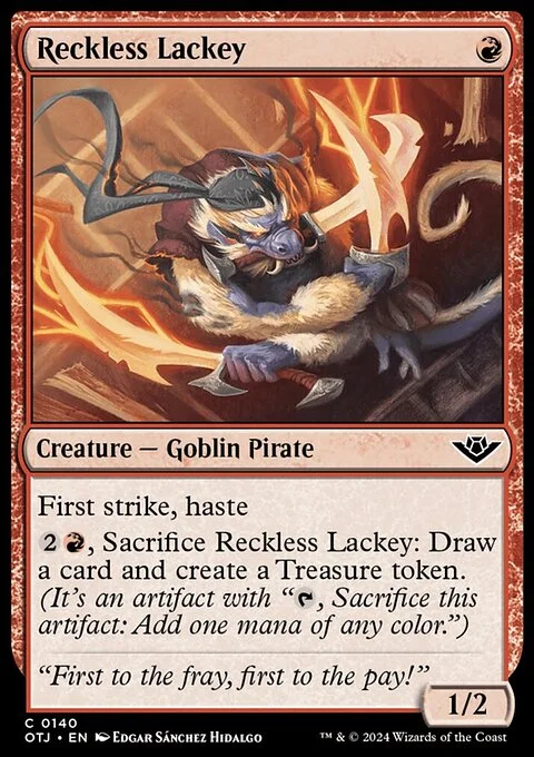 First strike, haste {2}{R}, Sacrifice this creature: Draw a card and create a Treasure token. (It's an artifact with "{T}, Sacrifice this token: Add one mana of any color.")