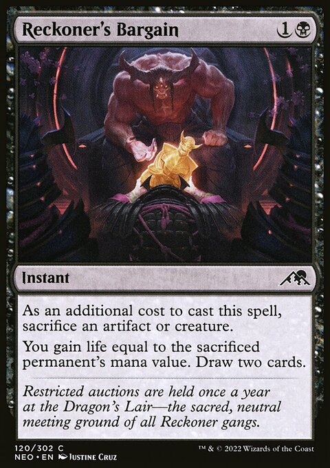 As an additional cost to cast this spell, sacrifice an artifact or creature. You gain life equal to the sacrificed permanent's mana value. Draw two cards.