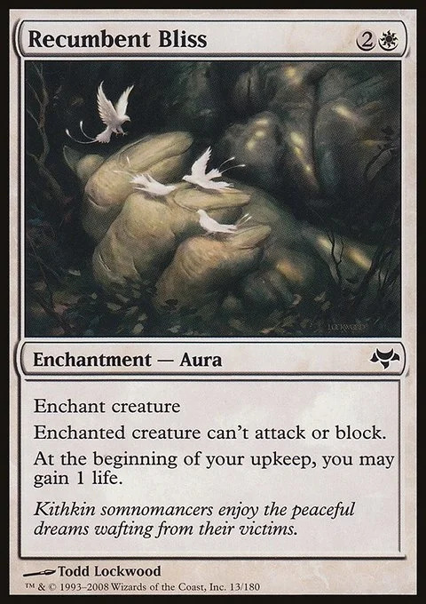 Enchant creature Enchanted creature can't attack or block. At the beginning of your upkeep, you may gain 1 life.