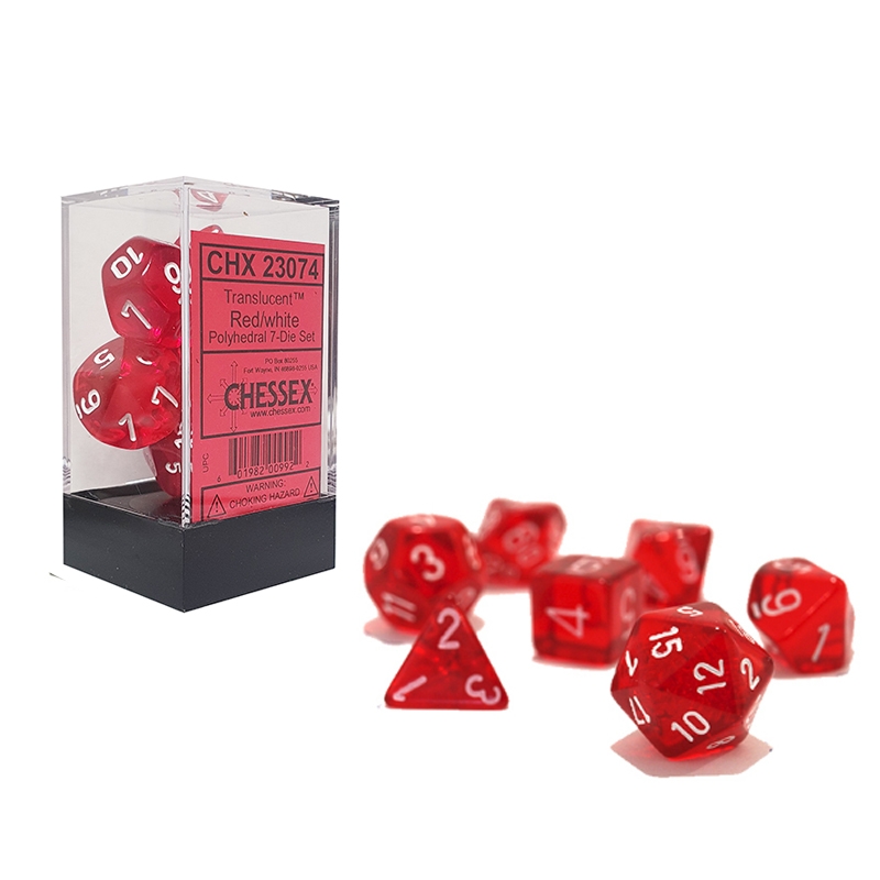 Red with White Translucent Polyhedral 7-Die Set Chessex CHX23074