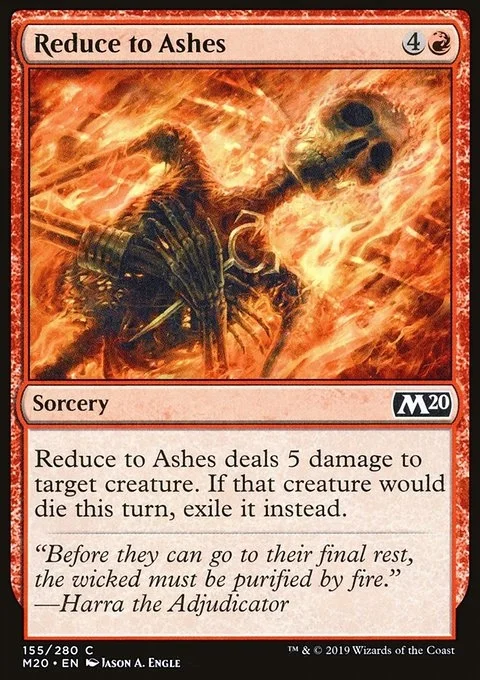 Reduce to Ashes deals 5 damage to target creature. If that creature would die this turn, exile it instead.