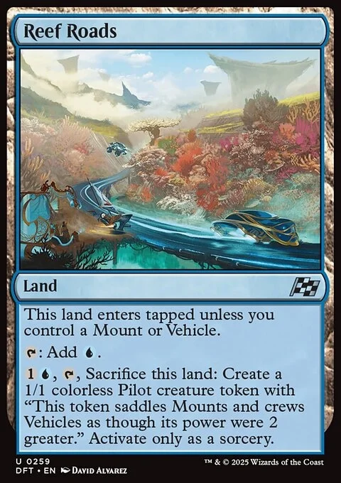 {1}{U}, {T}, Sacrifice this land: Create a 1/1 colorless Pilot creature token with "This token saddles Mounts and crews Vehicles as though its power were 2 greater." Activate only as a sorcery.