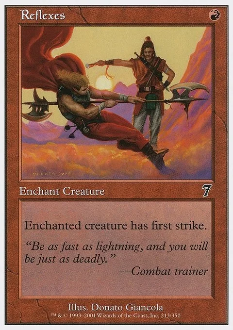 Enchant creature (Target a creature as you cast this. This card enters the battlefield attached to that creature.) Enchanted creature has first strike. (It deals combat damage before creatures without first strike.)