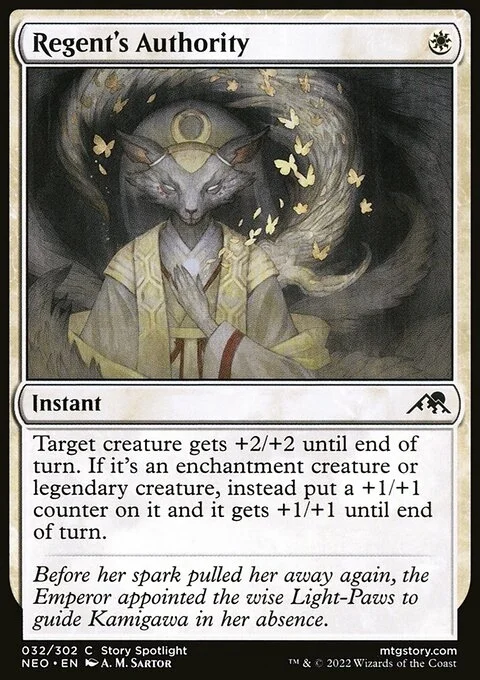 Target creature gets +2/+2 until end of turn. If it's an enchantment creature or legendary creature, instead put a +1/+1 counter on it and it gets +1/+1 until end of turn.