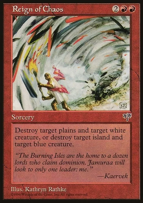 Destroy target plains and target white creature, or destroy target island and target blue creature.