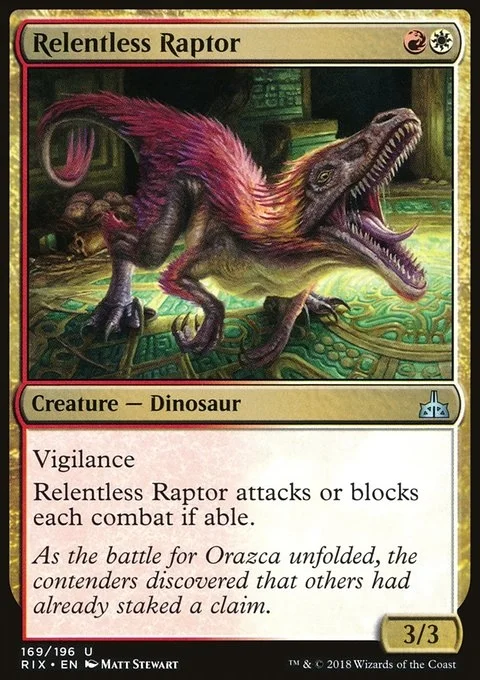 Vigilance Relentless Raptor attacks or blocks each combat if able.