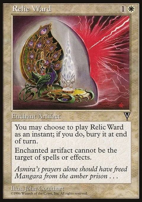 You may choose to play Relic Ward as an instant; if you do, bury it at end of turn.Enchanted artifact cannot be the target of spells or effects.