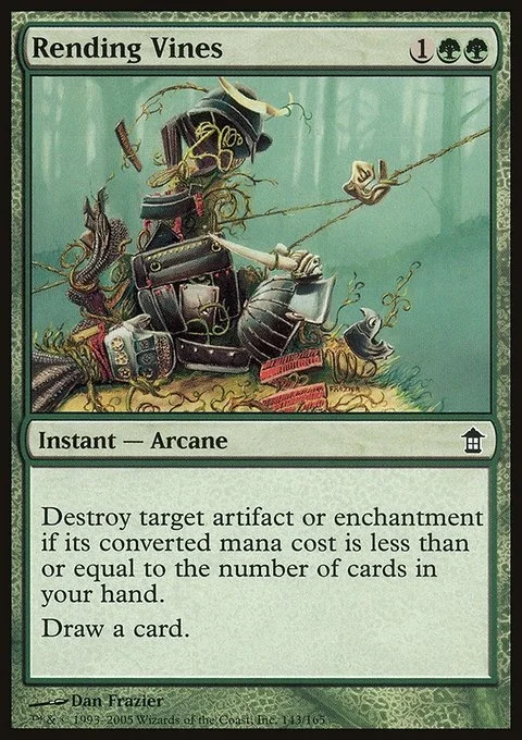 Destroy target artifact or enchantment if its mana value is less than or equal to the number of cards in your hand. Draw a card.