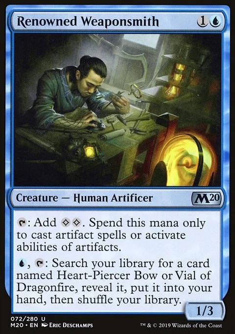 {T}: Add {C}{C}. Spend this mana only to cast artifact spells or activate abilities of artifacts. {U}, {T}: Search your library for a card named Heart-Piercer Bow or Vial of Dragonfire, reveal it, put it into your hand, then shuffle.