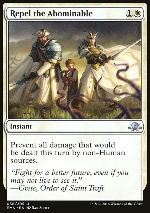Prevent all damage that would be dealt this turn by non-Human sources.