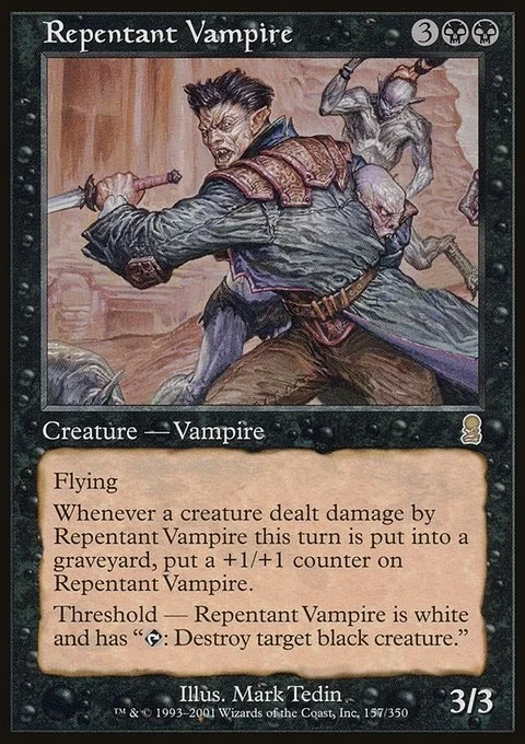 Threshold — As long as seven or more cards are in your graveyard, Repentant Vampire is white and has "{T}: Destroy target black creature."
