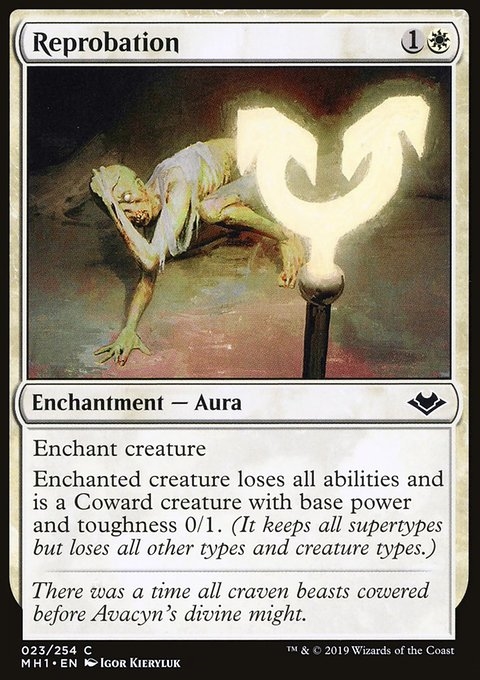 Enchant creature Enchanted creature loses all abilities and is a Coward creature with base power and toughness 0/1. (It keeps all supertypes but loses all other types and creature types.)