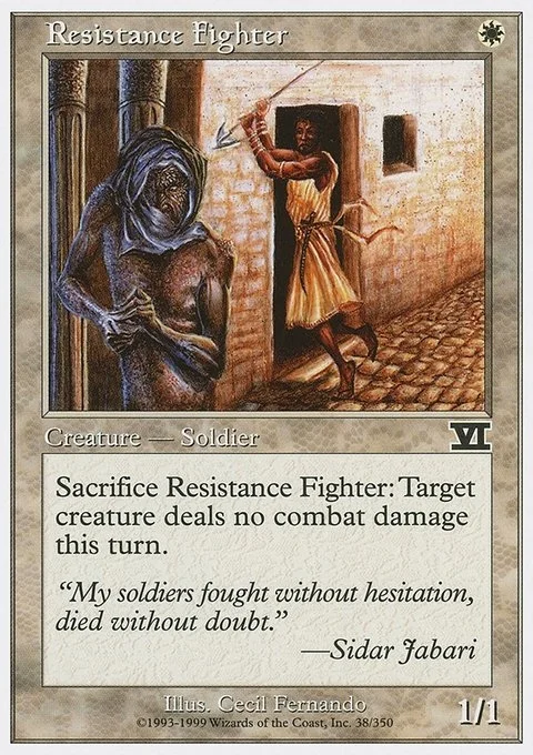 Sacrifice Resistance Fighter: Prevent all combat damage target creature would deal this turn.